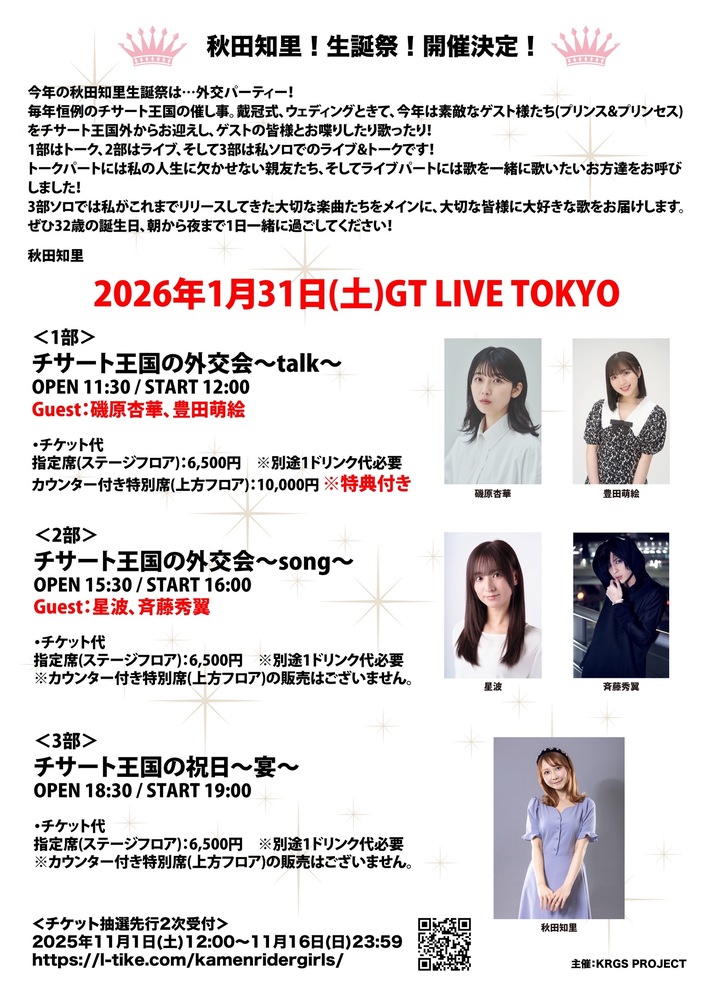 秋田知里生誕祭【チサート王国の外交会】〜song〜出演決定!
