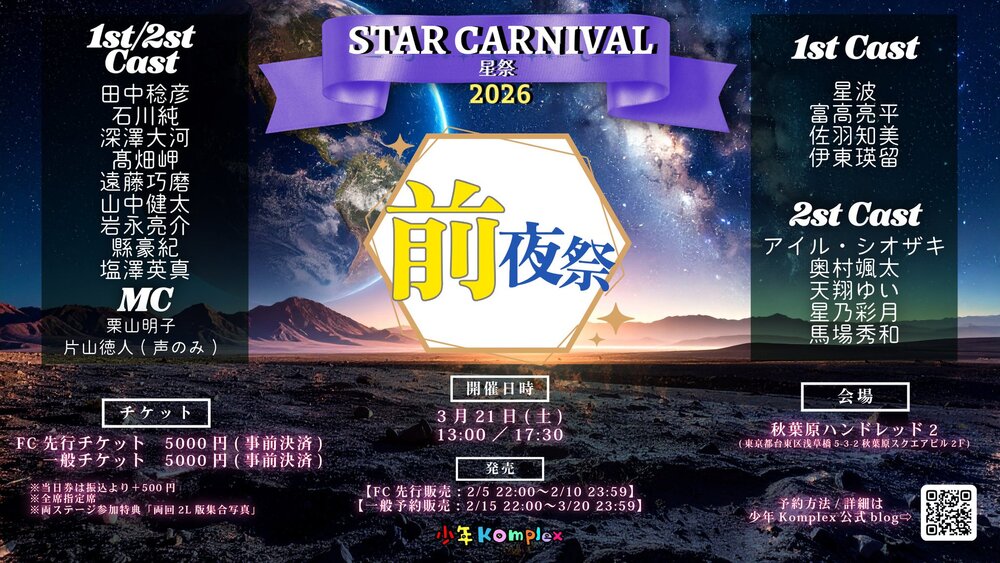 STAR CARNIVAL星祭2026 前夜祭開催決定!